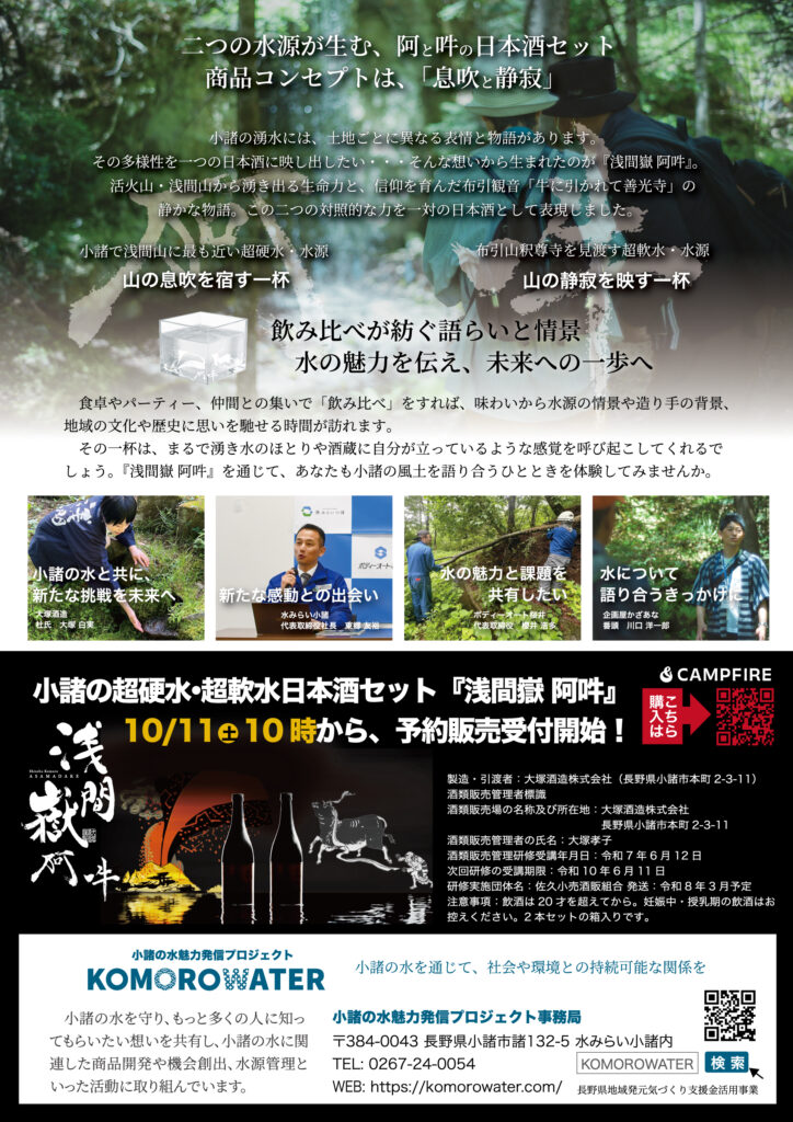 超硬水と超軟水の水源の個性に、大塚酒造の杜氏が挑戦し醸す『浅間嶽 阿吽』。