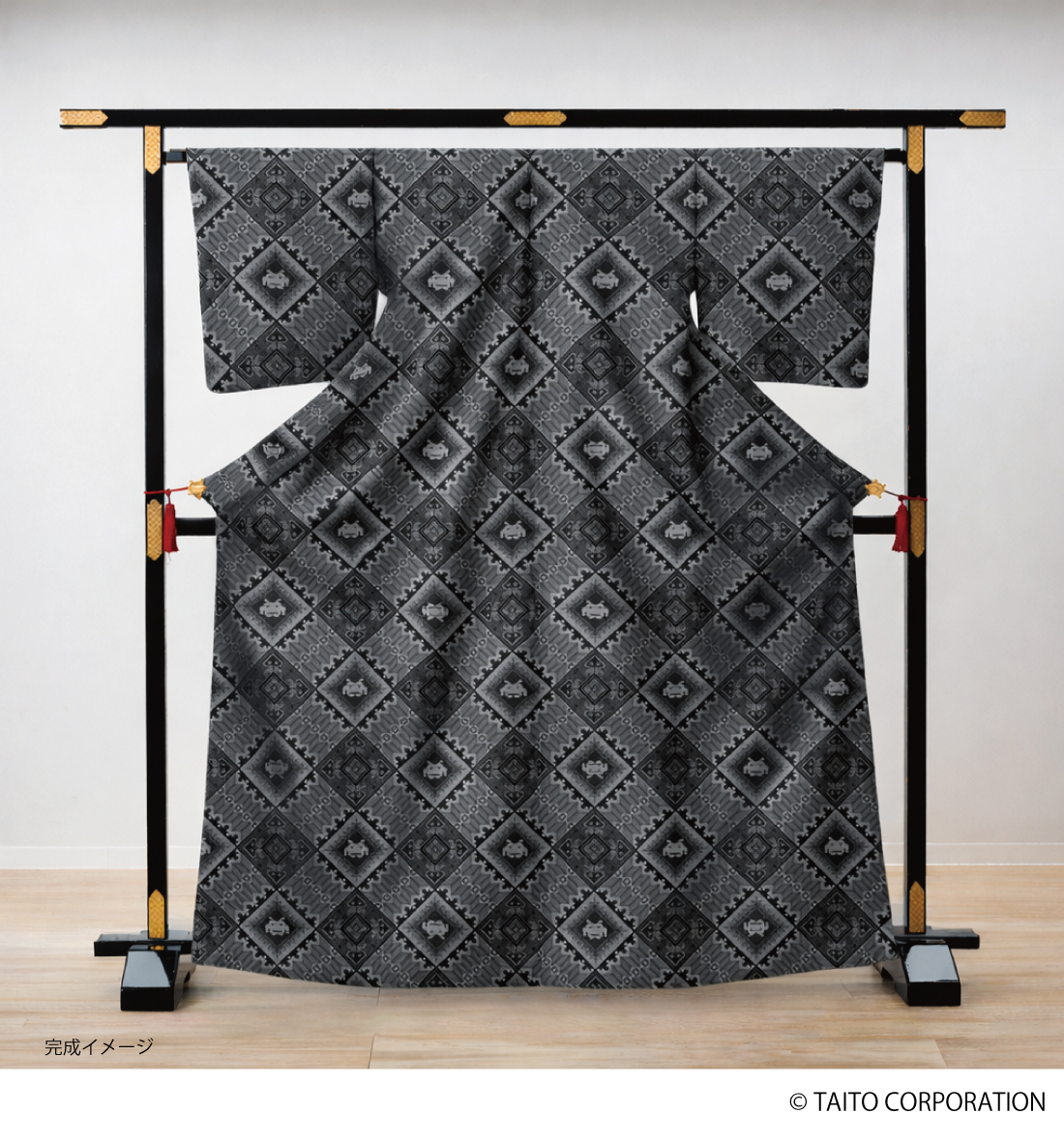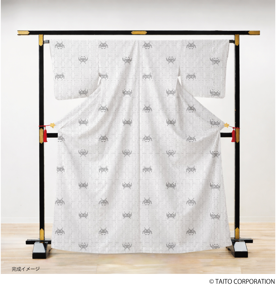 世代を超えて共有され、海外でもゲーム文化のアイコンとして広く認知される存在であり、ドットで構成されたその造形は、大島紬が模様を描く絣(かすり)技法と高い親和性を持っています。